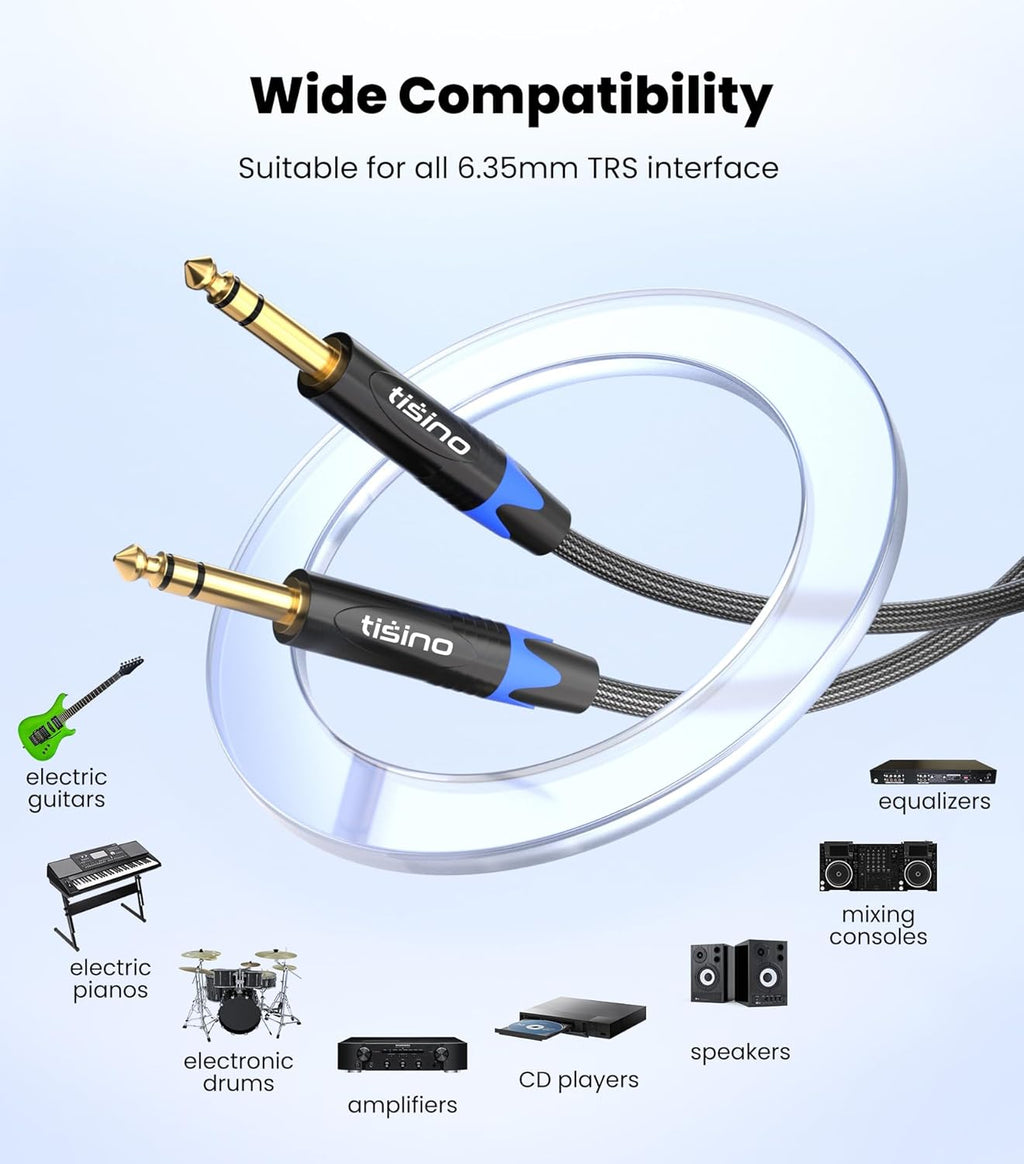tisino 1/4" TRS to 1/4" TRS Stereo Cable