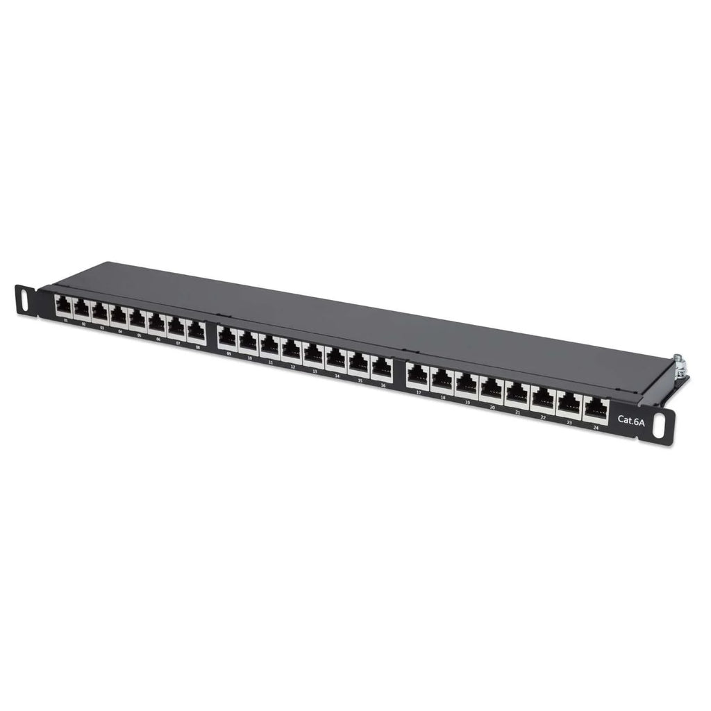 The Intellinet Network Solutions Cat6a Shielded Patch Panel helps IT staff create the right Cat6a-compliant network for their organization. Whether wiring connection points for all compatible equipment or adding more ports to the network with the latest Ethernet cabling standard available, the Cat6a Shielded Patch Panel helps the network grow and evolve. The panel is designed for fully shielded twisted-pair Cat6a wires, and compatible Krone punch-down tools will help get ports wired quickly. The Intellinet Network Solutions Cat6a Shielded Patch Panel adheres to current industry standards and is 19"-rack compliant.