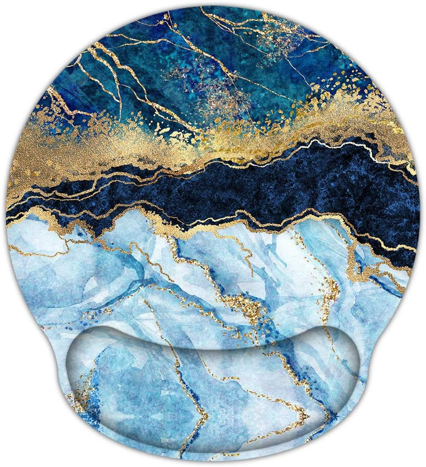 Ergonomic Mouse Pad with Wrist Rest Support Gel, Non Slip Rubber Base Pad Computer PC Laptop Women Men Mousepad for Home, Office, Gaming, Working Easy Typing, Pain Relief, Blue Marble