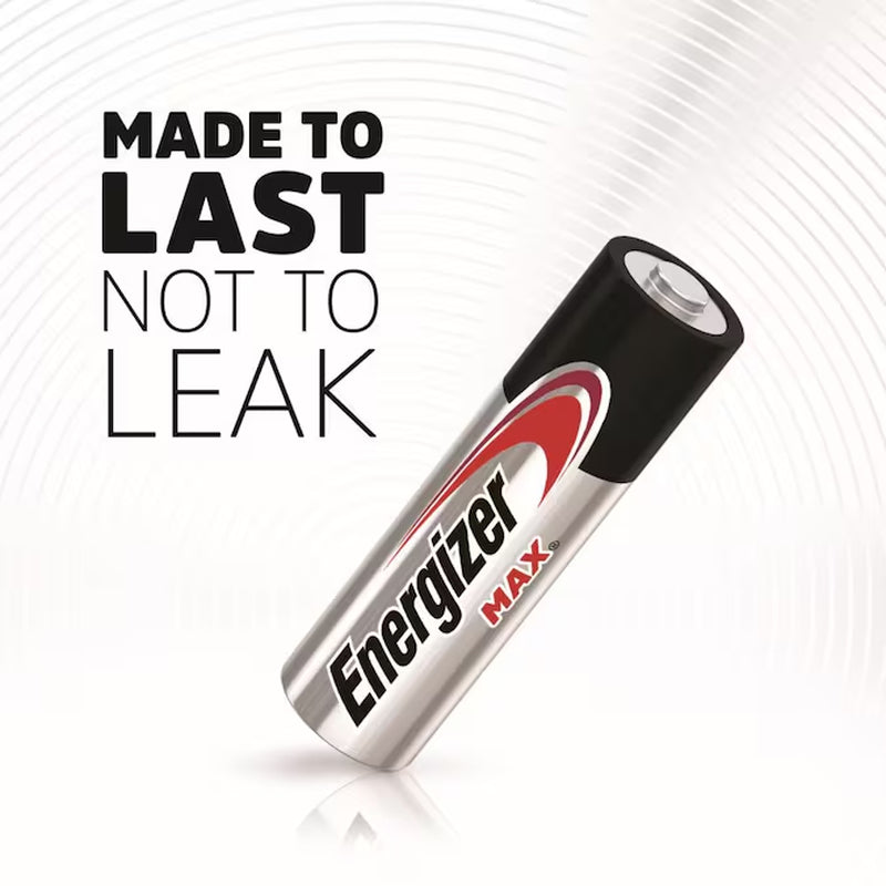 Power the devices you love with Energizer MAX Alkaline AA Batteries. These Energizer batteries fuel the technology that helps you live, work and play, whether you need remote batteries, clock batteries, or backup batteries for your child's favorite toys and games. Energizer's #1 longest-lasting MAX, these double A batteries keep your favorite devices running longer. Powerseal Technology helps protect your devices against damaging leaks for up to two years after these AA Energizer MAX Batteries are fully used. With a shelf life of up to 12 years in storage, these long lasting batteries are ready to keep your devices operating when you need them most. Depend on the power of Energizer MAX AA Batteries to power your everyday electronics.