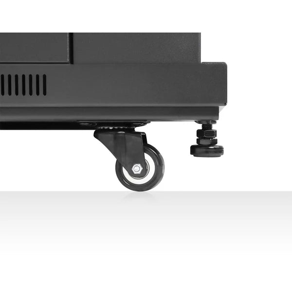 Our package contents don’t end with the rack and fans. On the three included shelves, you can place equipment that is not rack-mountable. Three vented panels cover unused space in the cabinet. Four wheels offer ease of mobility around your office or server room. Once the enclosure is in place, you can stabilize it using the built-in leveling feet. To mount your 19" equipment, you don’t even need to purchase mounting material because 40 #10-32 screws are also included.