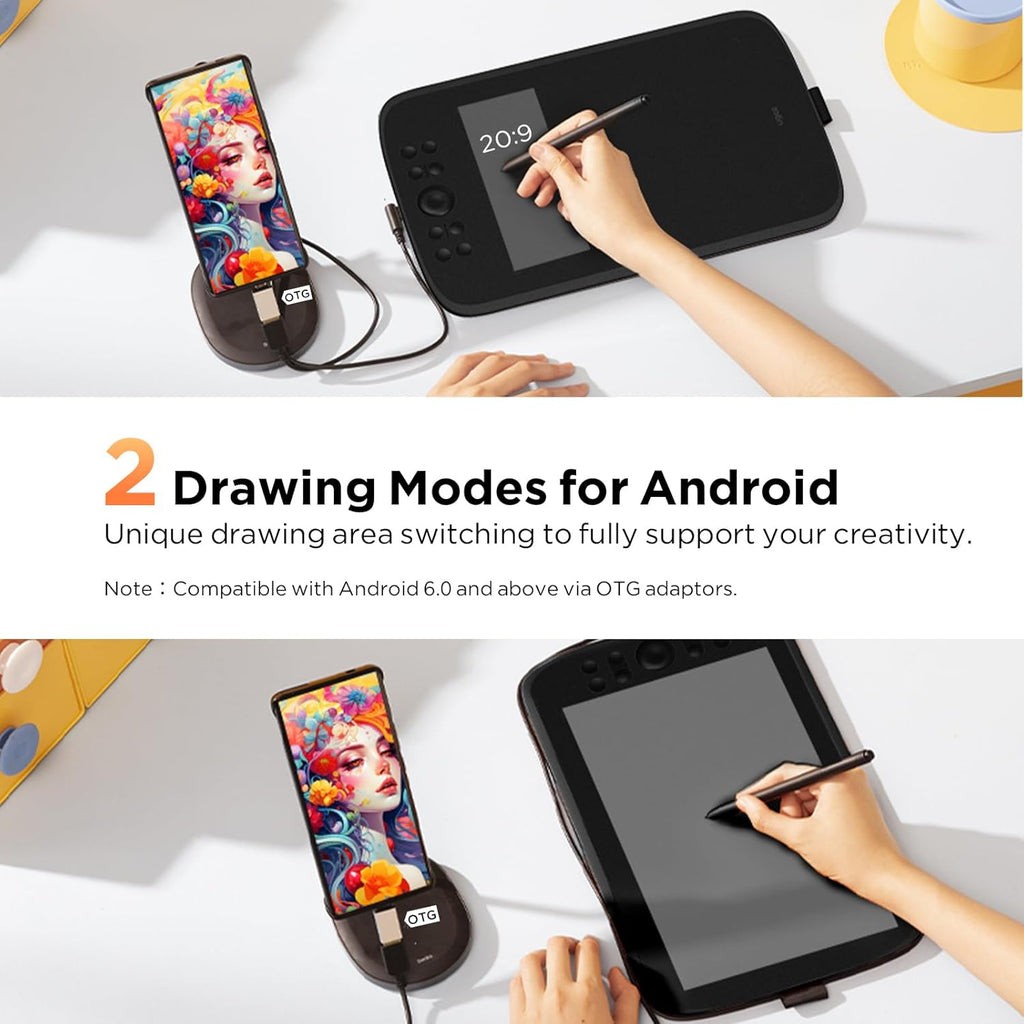 - When connected to an Android device, the M908 provides two different working area options. This caters to the diverse drawing preferences of creators on Android devices